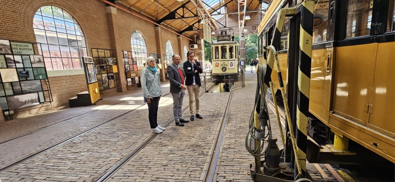 Dit museum is erg veelzijdig. Je vindt er gebouwen, voorwerpen en verhalen uit een ver verleden, maar ook herinneringen aan je eigen jeugd. We begonnen ons bezoek met een rondrit in de tram onder leiding van een enthousiaste conducteur. We bezochten een molen, de oude tramhalte, van Gend en Loos, een stolpboerderij, een school, het wit-gele-kruisgebouw, arbeiderswoningen, een scheepswerf, een bakker, een chinees restaurant, et cetera.
