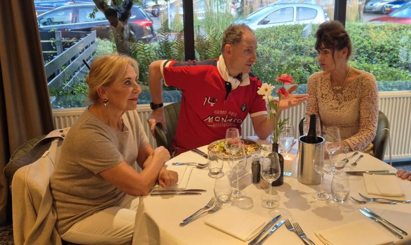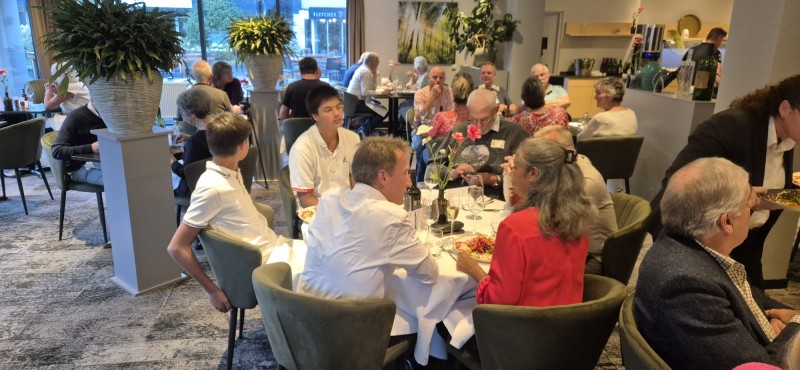 Rond 19.00 uur werden we bij het diner verwacht. Na een voortreffelijk diner - met heerlijke wijn door een jarige geschonken - en een gezellige nazit ging eenieder naar zijn zeer grote hotelkamer.