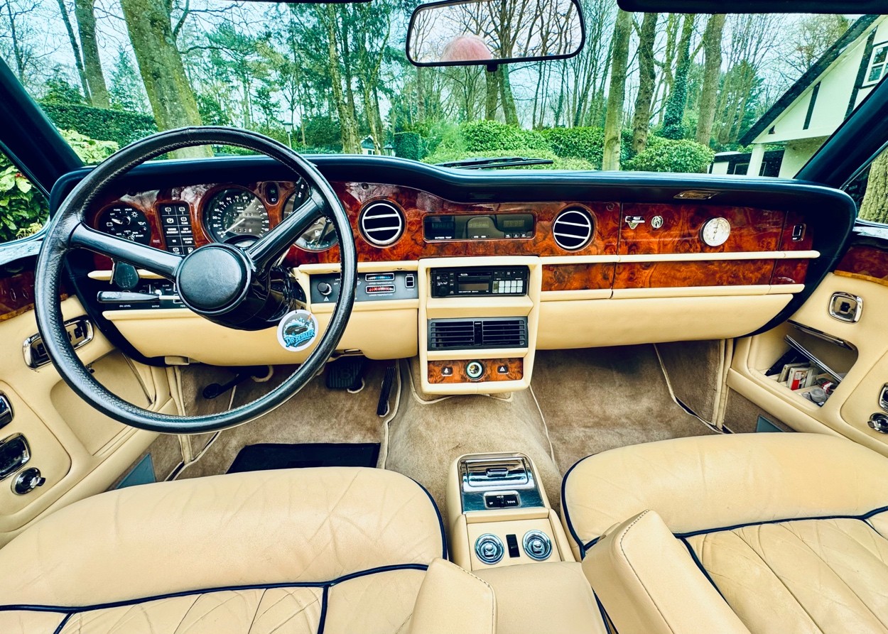 Het hier aangeboden exemplaar betreft een Bentley Corniche Convertible uit 1984 uitgevoerd in de klassieke kleurcombinatie Roundel Blue met Magnolia lederen interieur en blauwe piping.